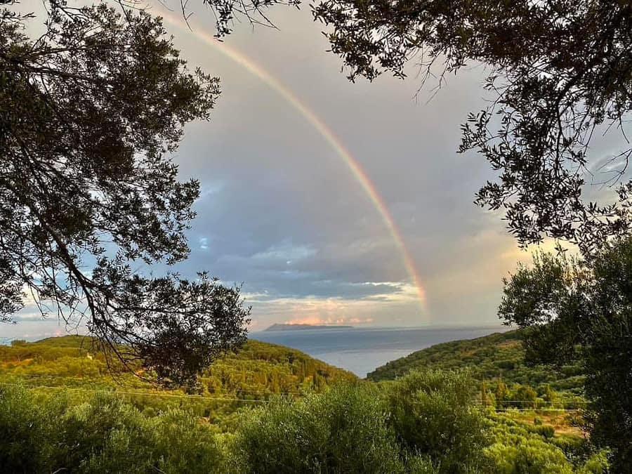 The beach towns of Agios Stefanos (approx. 2 km) and Arillas (approx. 5 km) offer cultural and gastronomic variety. Arillas is also a center for alternative and spiritual tourism, with a wide range of bodywork, workshops, and events.